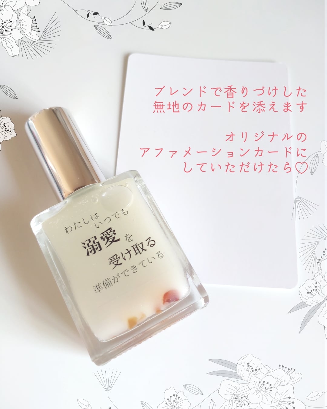 アンシェントメモリーオイルは「これさえあれば叶う!」という効果を保証するものではありませんが、叶えたい願いを自分でハッキリと意図し、目的を持って使うことによって、「願いの叶った自分」へと少しずつ変化しながら近付いていくことができます。
